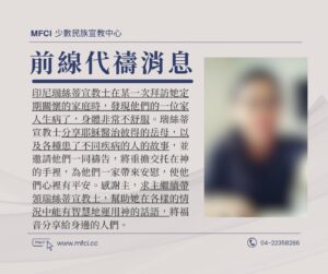 前線代禱消息 為印尼瑞絲蒂宣教士