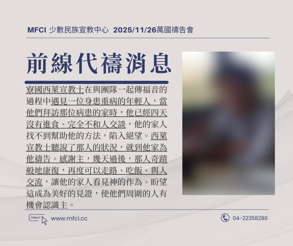 寮國西萊宣教士在與團隊一起傳福音的過程中遇見一位身患重病的年輕人,當他們拜訪那位病患的家時,他已經四天沒有進食..
