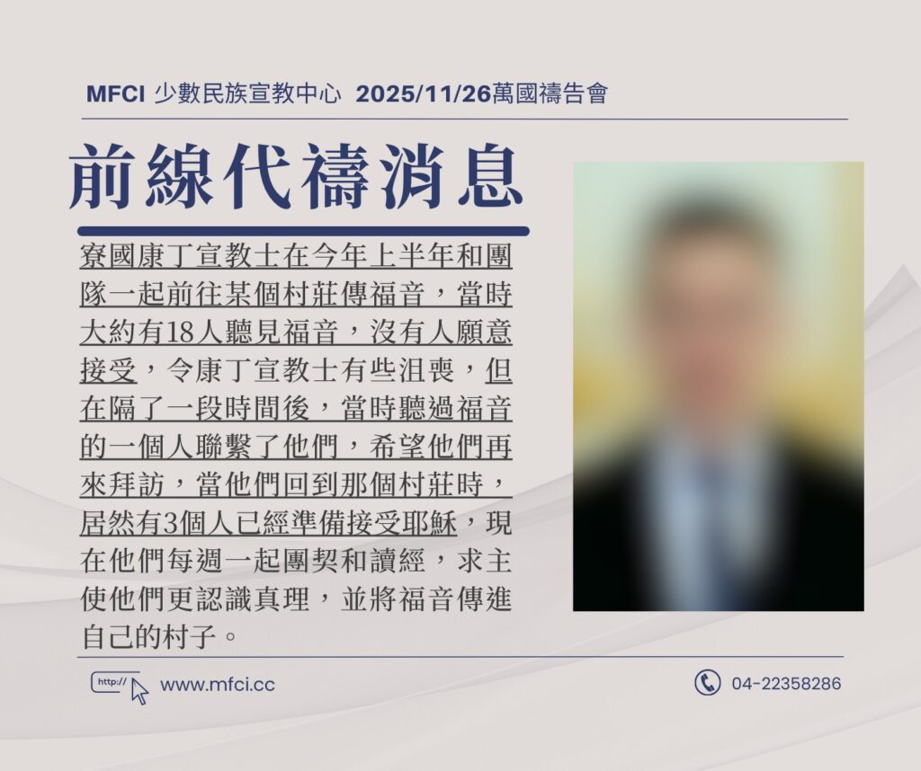 寮國康丁宣教士在今年上半年和團隊一起前往某個村莊傳福音,當時大約有18人聽見福音,沒有人願意接受,令康丁宣教士..
