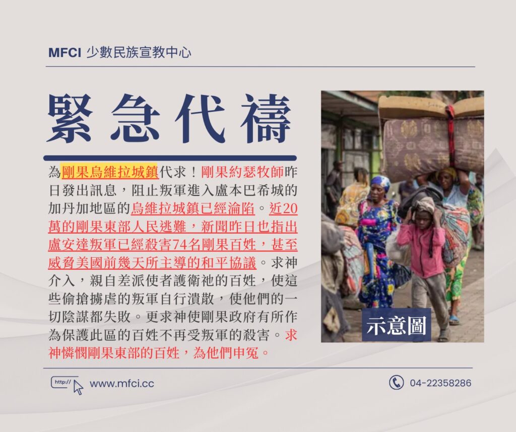 為剛果烏維拉城鎮代求!剛果約瑟牧師昨日發出訊息,阻止叛軍進入盧本巴希城的加丹加地區的烏維拉城鎮已經淪陷。近20..