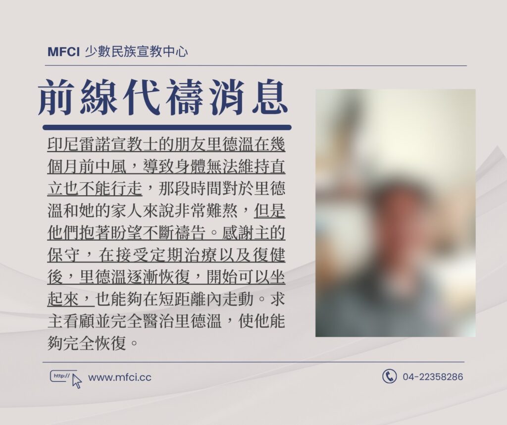 印尼雷諾宣教士的朋友里德溫在幾個月前中風,導致身體無法維持直立也不能行走,那段時間對於里德溫和她的家人來說非常..