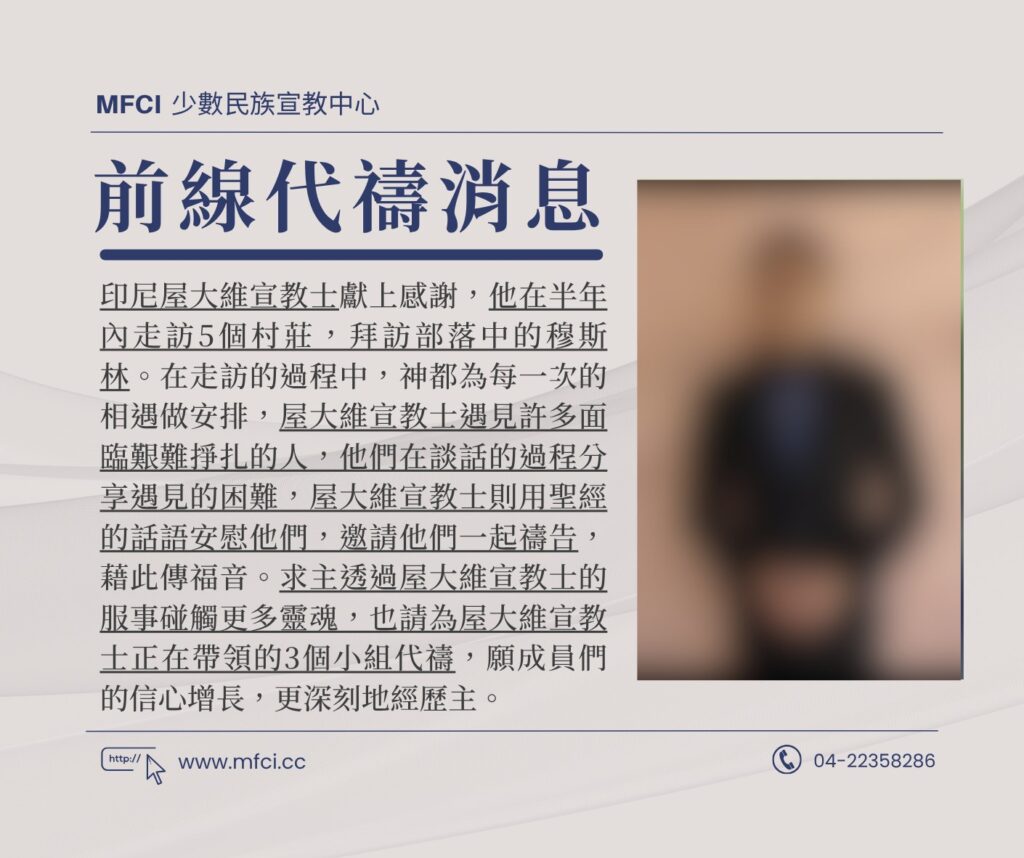 印尼屋大維宣教士獻上感謝,他在半年內走訪5個村莊,拜訪部落中的穆斯林。在走訪的過程中,神都為每一次的相遇做安排..
