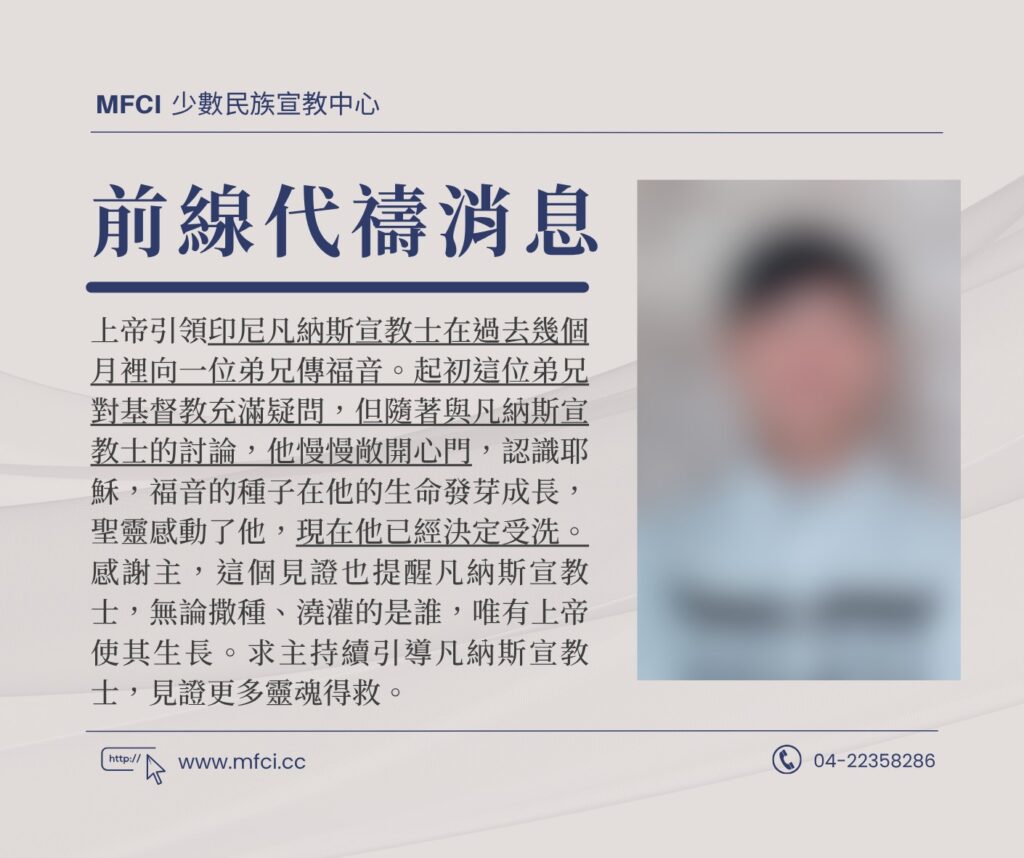 上帝引領印尼凡納斯宣教士在過去幾個月裡向一位弟兄傳福音。起初這位弟兄對基督教充滿疑問,但隨著與凡納斯宣教士的討..