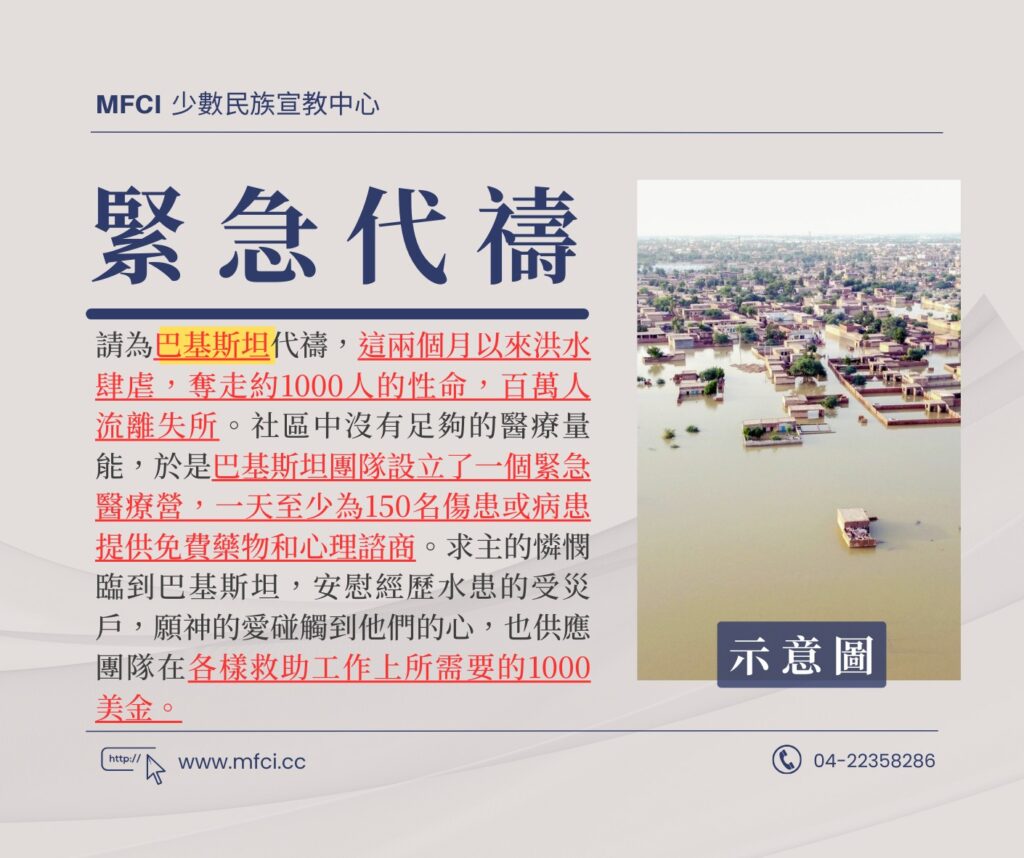 請為巴基斯坦代禱,這兩個月以來洪水肆虐,奪走約1000人的性命,百萬人流離失所。社區中沒有足夠的醫療量能,於是..