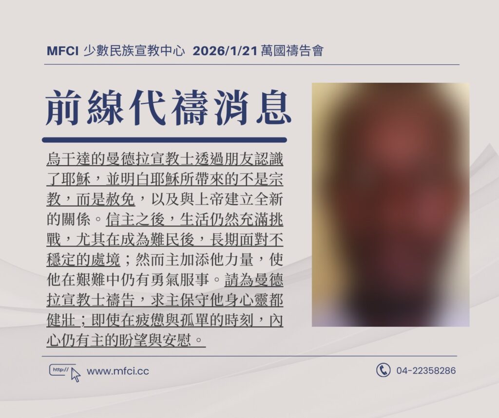 請為剛果的約瑟牧師代禱。約瑟牧師於去年 12 月底家中遭遇搶劫,朋友暫放在他那裡的機車也一併被偷。因機車失竊,..