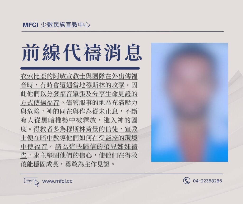 衣索比亞的阿敏宣教士與團隊在外出傳福音時,有時會遭遇當地穆斯林的攻擊,因此他們以分發福音單張及分享生命見證的方..