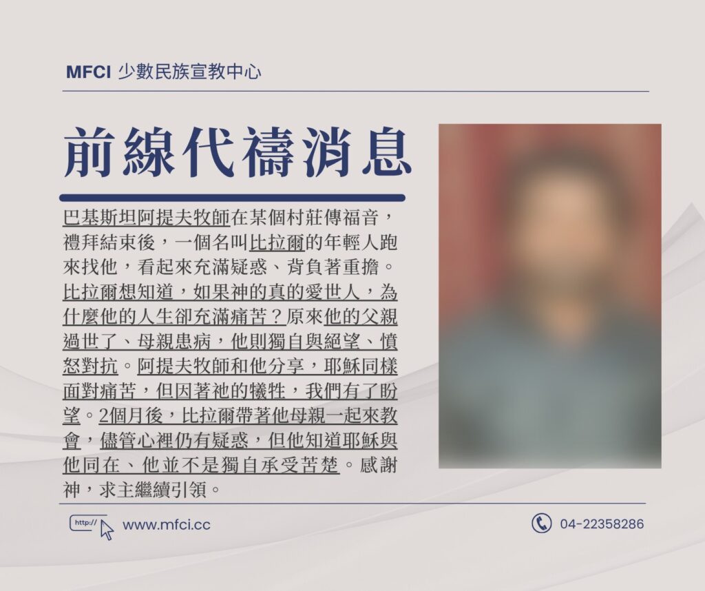 巴基斯坦阿提夫牧師在某個村莊傳福音,禮拜結束後,一個名叫比拉爾的年輕人跑來找他,看起來充滿疑惑、背負著重擔。比..