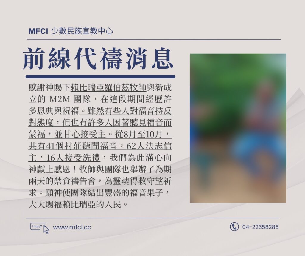 感謝神賜下賴比瑞亞羅伯茲牧師與新成立的 M2M 團隊,在這段期間經歷許多恩典與祝福。雖然有些人對福音持反對態度..