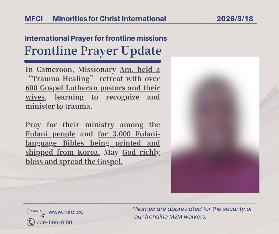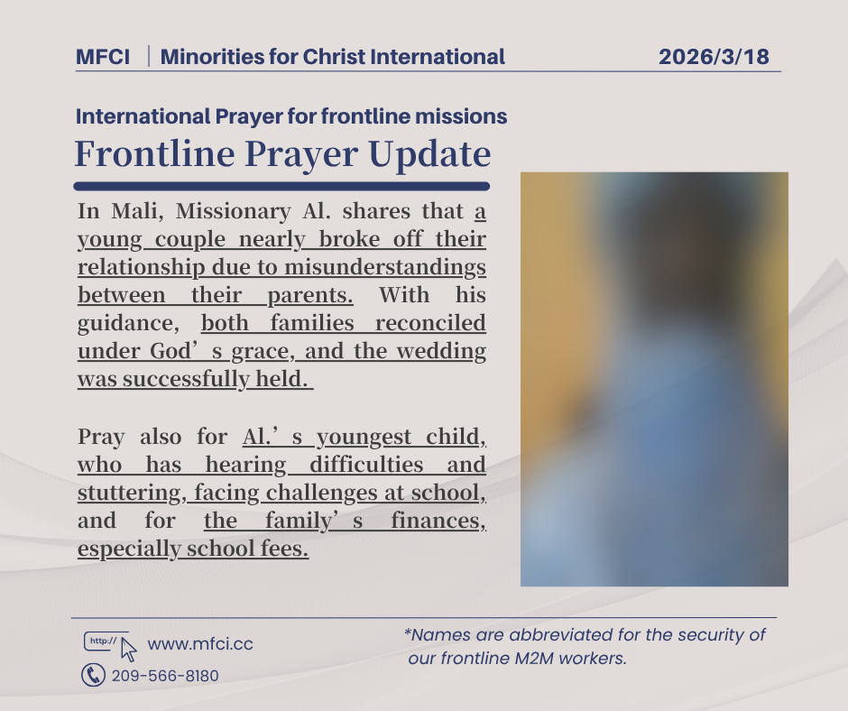 Pray for the Mission Field20260318-Mali-Reconciliation Posted on 2026-03-21 by MFCI Continue reading →